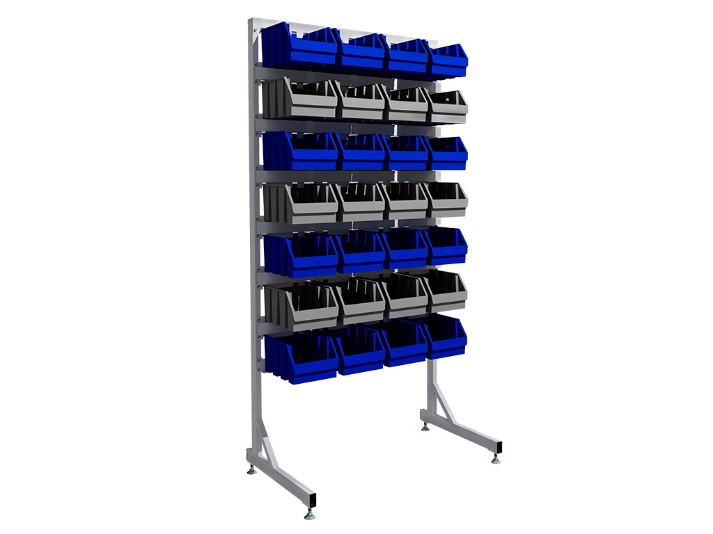 Ярусы для навешивания пластиковых лотков (ящиков) сделаны из листовой стали. Они обеспечивают надежное крепление и точное позиционирование ячеек на стеллаже. Каждая горизонтальная деталь несущей панели фиксируется к стойке в четырех точках.